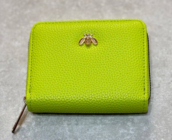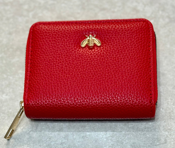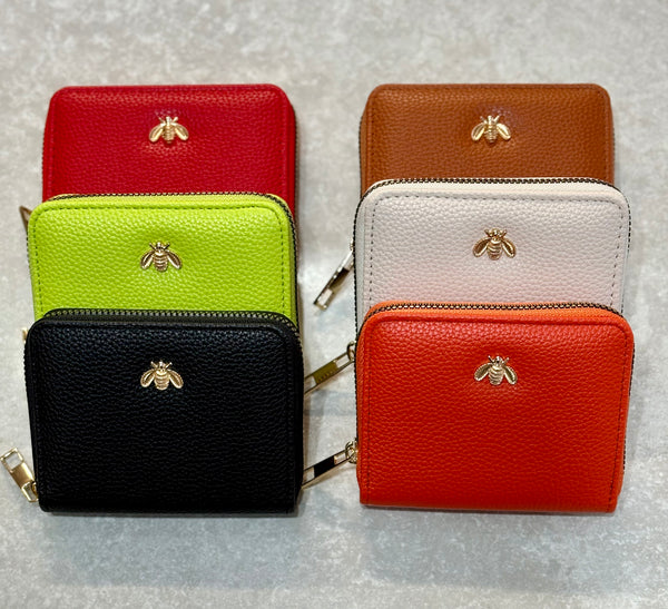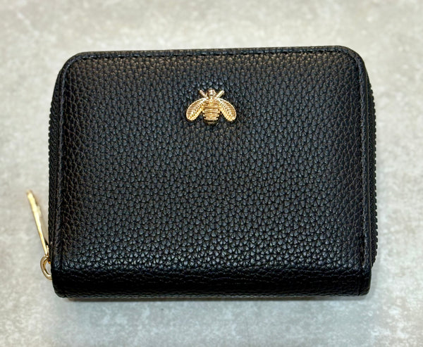 Simple & Practical Style Purse in a Leather Grain PU with Gold Bee Motif.