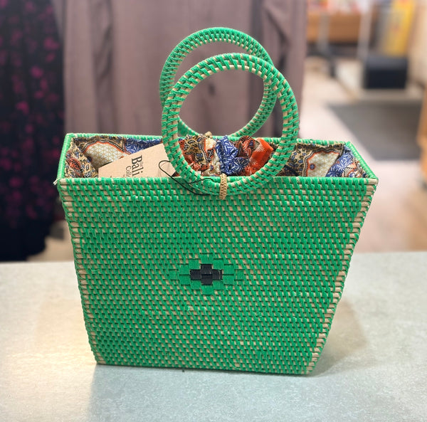 Our stunning Green day bag from Bali. Made from natural palm fibres in a fabulous weave. This bag feels modern but with the knowledge that it has been completely hand made by local craftsmen using totally natural and eco friendly methods.