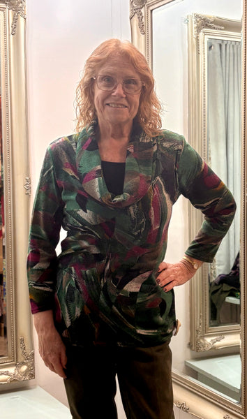 Abstract Print Cowl Neck Top/Tunic,