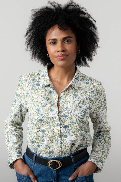 LM25502 PATSY DITSY PRINT ORGANIC COTTON SHIRT MOSS